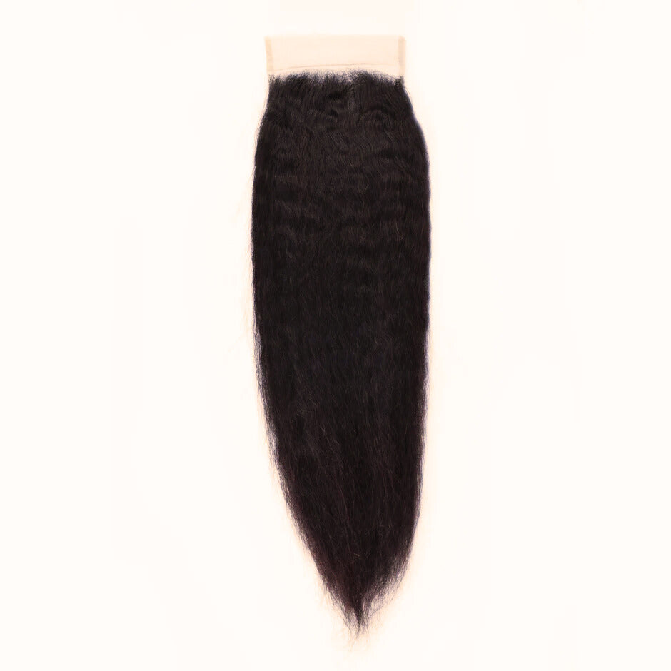 The Trophy Wife closure is crafted from 100% raw human hair, with a softly textured kinky straight finish that mirrors the look of blown-out natural hair. Full-bodied yet lightweight, it pairs perfectly with our Trophy Wife bundles for a refined, sculpted look that blends effortlessly.